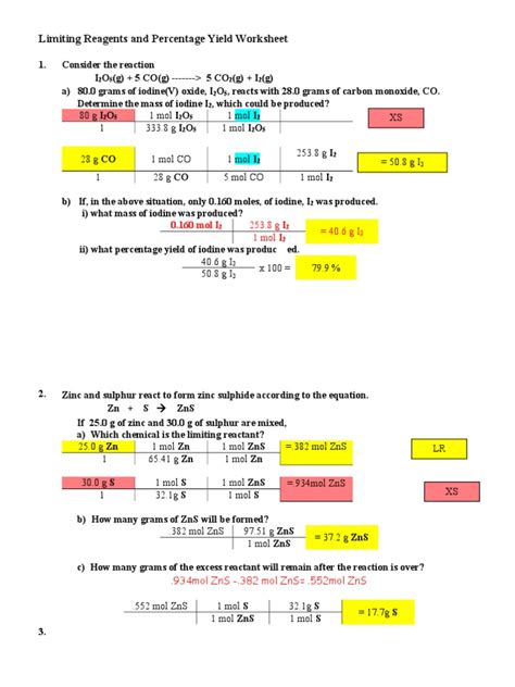 Read limiting reactant and percent yield answers PDF Google eBookstore
